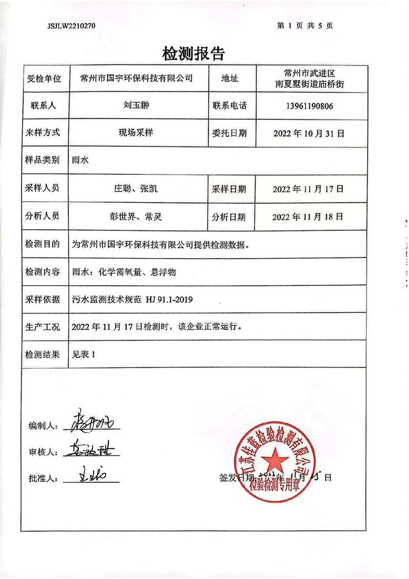 雨水檢測(cè)報(bào)告